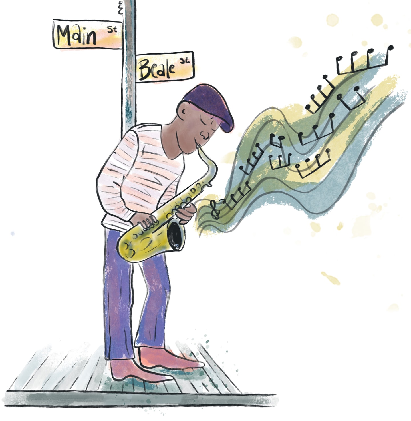 From “Ella’s New Beat,” a middle-grade memoir written by Ella Morrissey. This book project was a collaboration with the Make-A-Wish Foundation of Missouri & Kansas, which commissioned me to illustrate Ella’s real-life heart transplant journey. The splatters convey the energy of Beale Street, a place of hope and discovery in her story.
