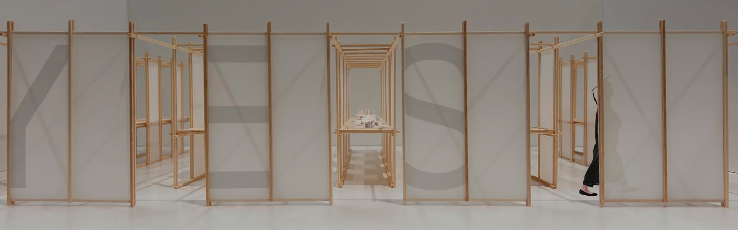 “Across the Grain builds a spatial framework that invites exploration, dialogue, and discovery. Starting with a uniform grid, the design reveals diagonal relationships that open unexpected sightlines from one corridor to the next… It is a field of gentle wooden lines and delicate joints that encourages visitors to look sideways, linger, and find dialogue in the spaces between.”